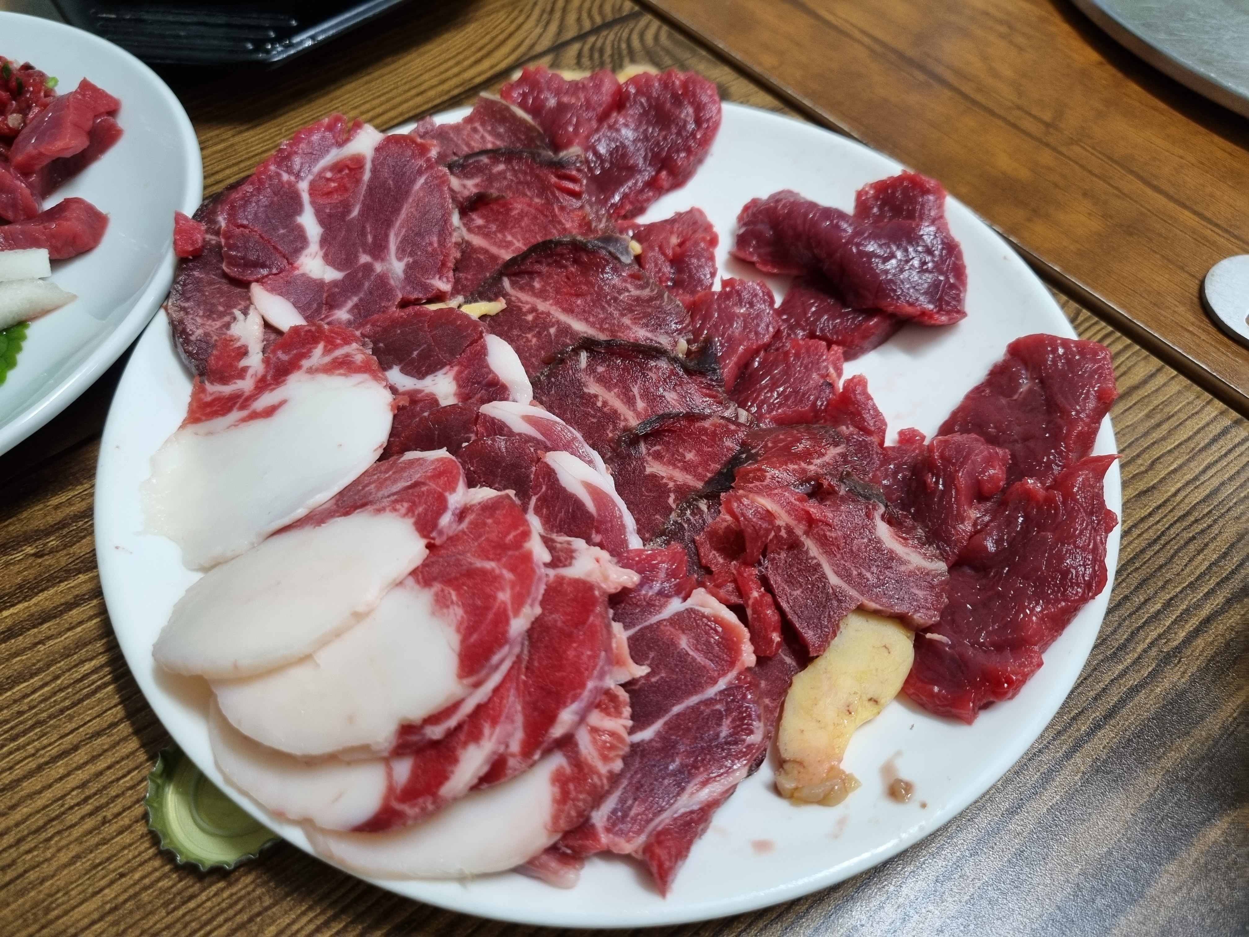 이날의 저녁 메뉴는 말고기이다. 사실 성산 일출봉을 이날의 목적지로 했던 이유중의 하나가 저녁 메뉴로 이곳을 미리 계획했기 때문인데, 말고기를 일본 구마모토 갔을 때 맛있게 먹었던 기억이 있어서 예전에 제주 왔을때 차로 오가며 봐둔 마우돈이라는 말고기 무한리필집이 마침 성산 일출봉 근처라 숙소도 이 근처로 예약하고 이곳에 오게 되었다.