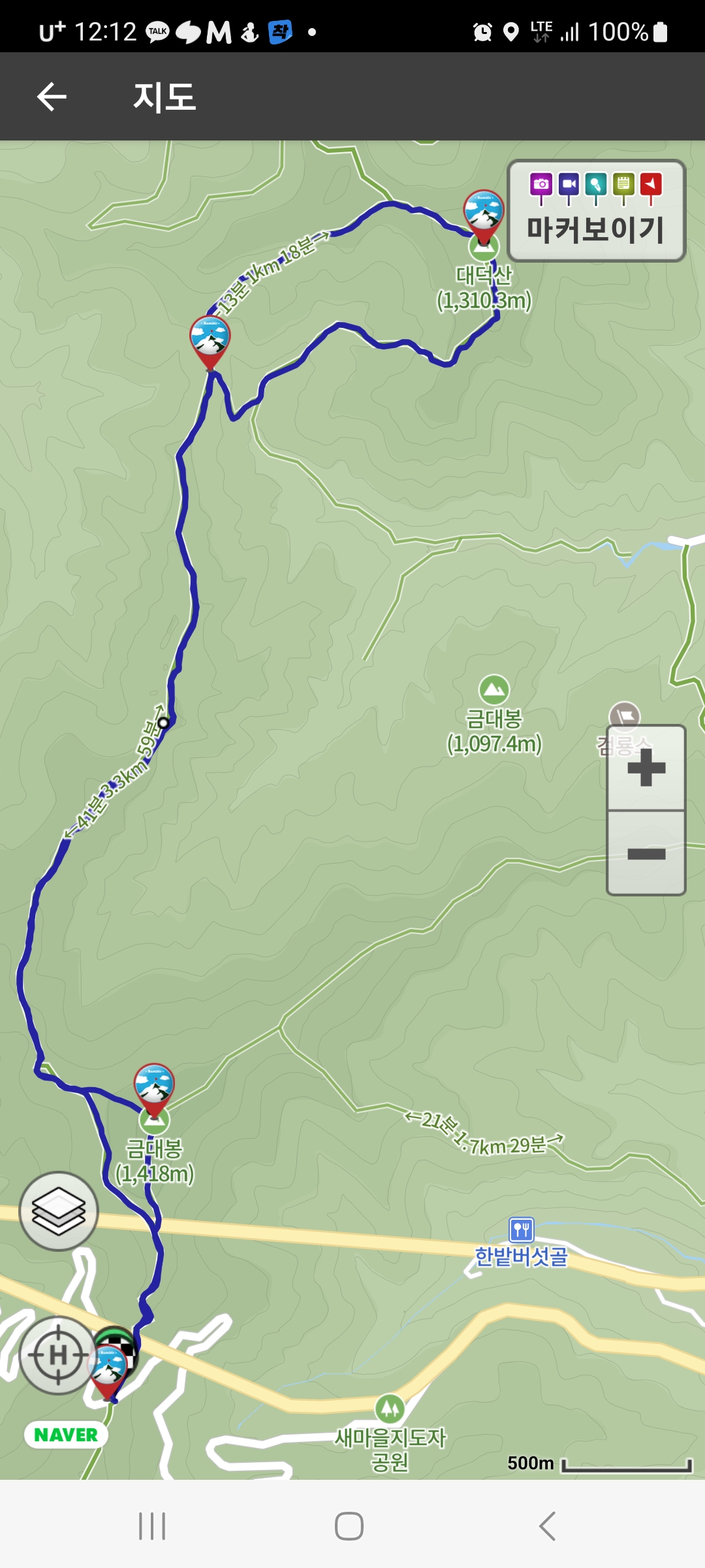 평속 3.6km로 12.2km를 3시간 40여분만에 주파했다. 이날 석병산, 노추산, 금대봉, 대덕산까지 총 산행거리가 24km가 넘어서 명산탐방하면서 하루 산행거리로는 최장거리 기록이다. 그렇긴 해도 이날 오른 산들이 전부 등산로가 편한 산들이라 산행거리에 비해서 그렇게 힘들지는 않았던 날이다. 오히려 다음날이 총 산행거리는 조금 짧긴 했어도 훨씬 힘들었던 날이었다. 그 얘기들은 다음 글에서~~