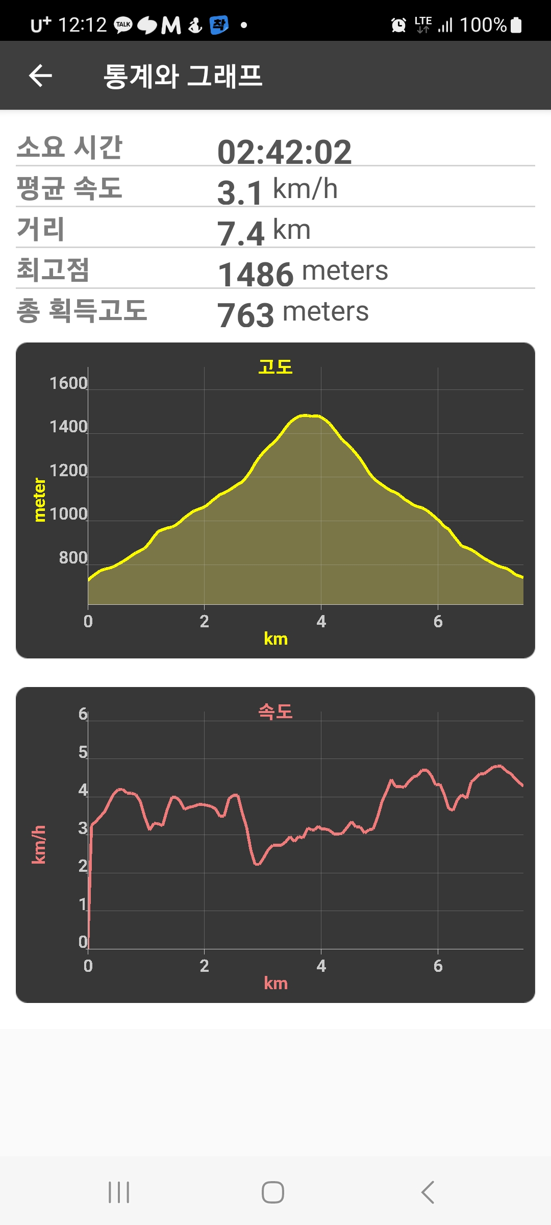 등산로는 정비가 잘 되어있는데 산행거리가 7.5km정도로 짧은 거리가 아닌데다, 꾸준히 오르막길이면서 정상 부근에 상당히 가파르게 올라야하는 깔딱고개 구간도 있어서 만만치않은 산행길이었다.