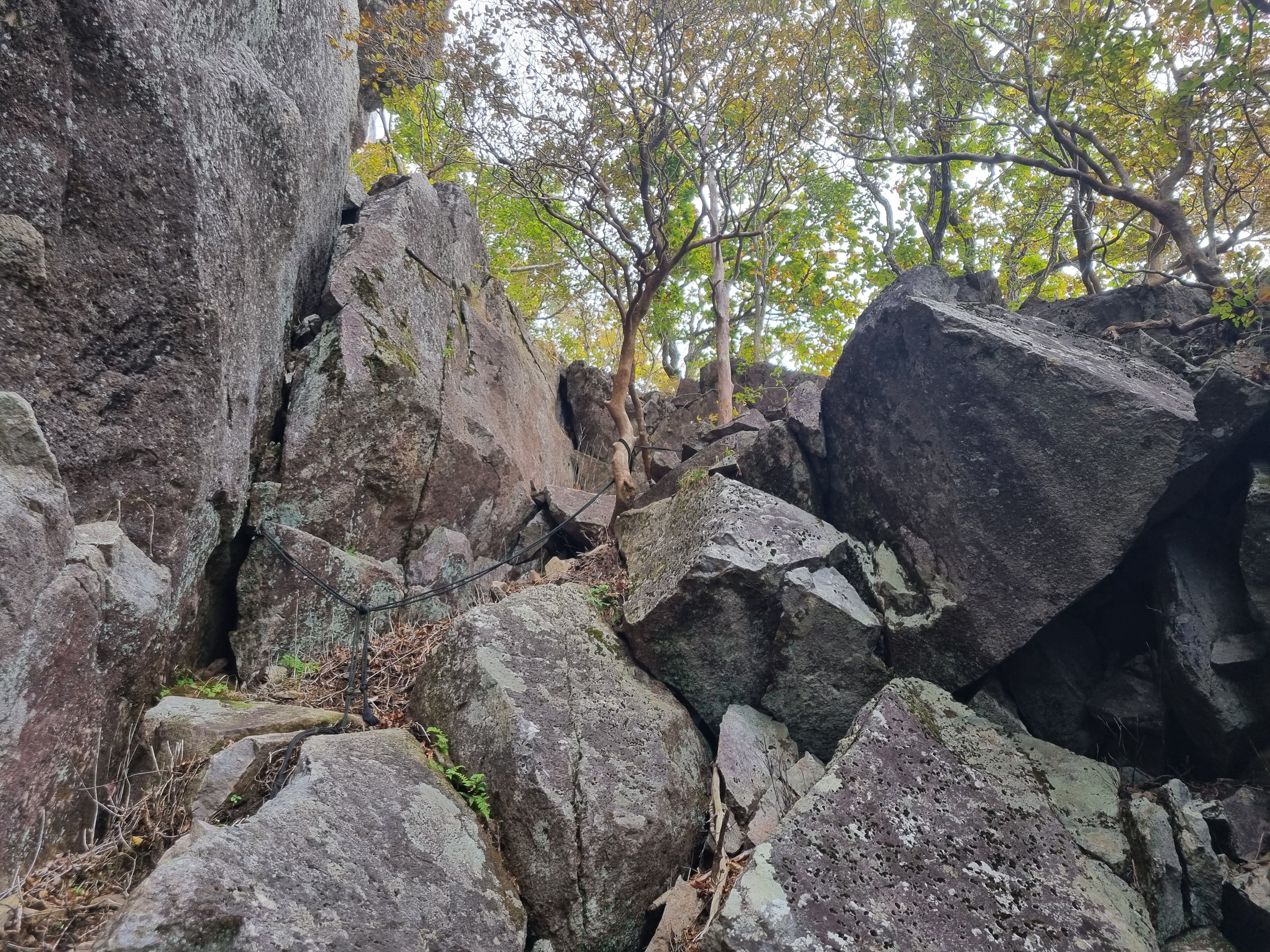 정상까지 가는 최단코스다 보니 쉴틈이 없이 계속 오르막길이다. 이번 명산 탐방하면서 오른 산중에서는 가장 힘들었던 산이긴 했지만 그래도 생각보다는 어렵지 않게 올랐는데 여기 보이는 바위구간부터는 상당히 급경사 구간을 올라야한다.