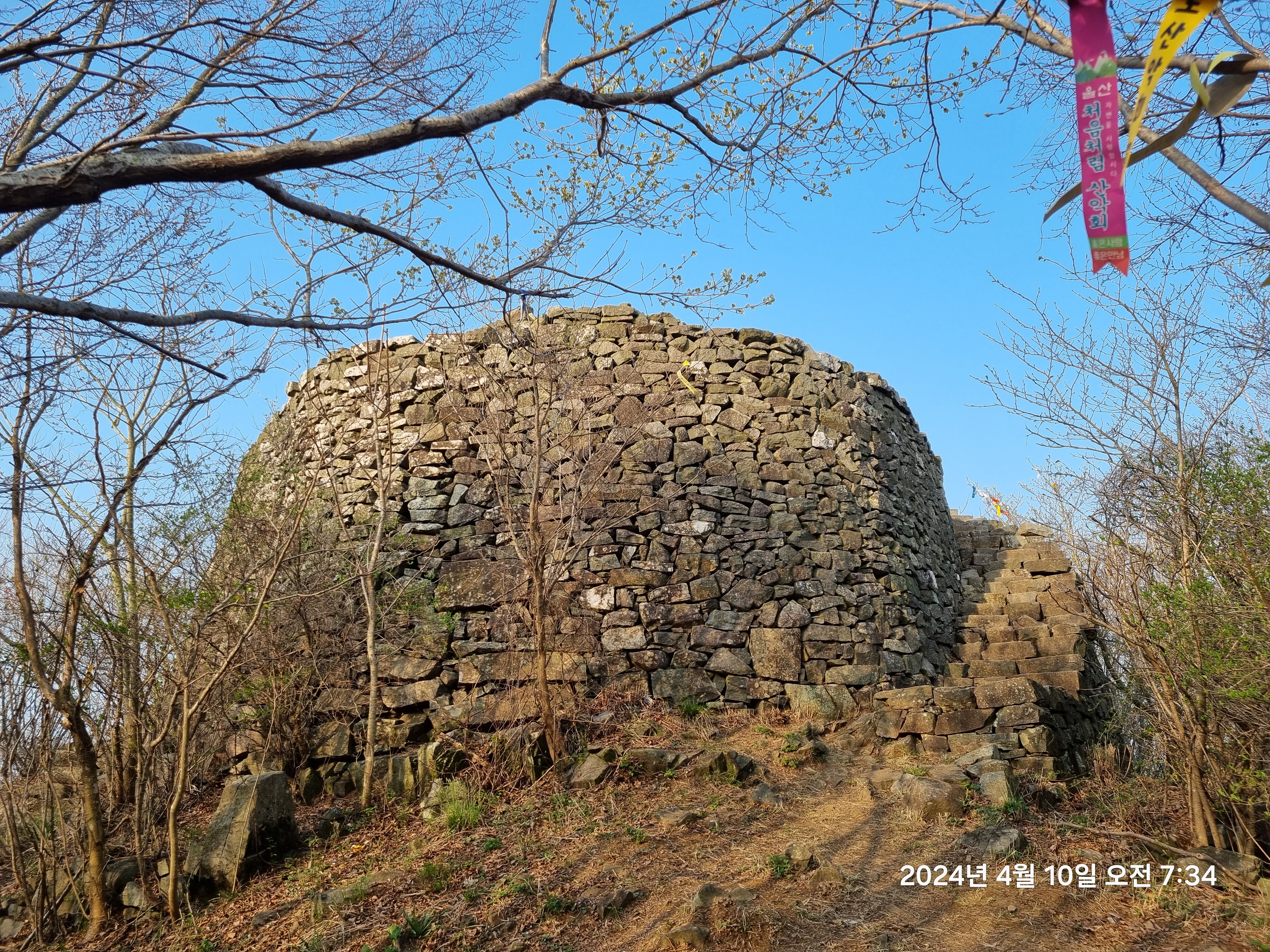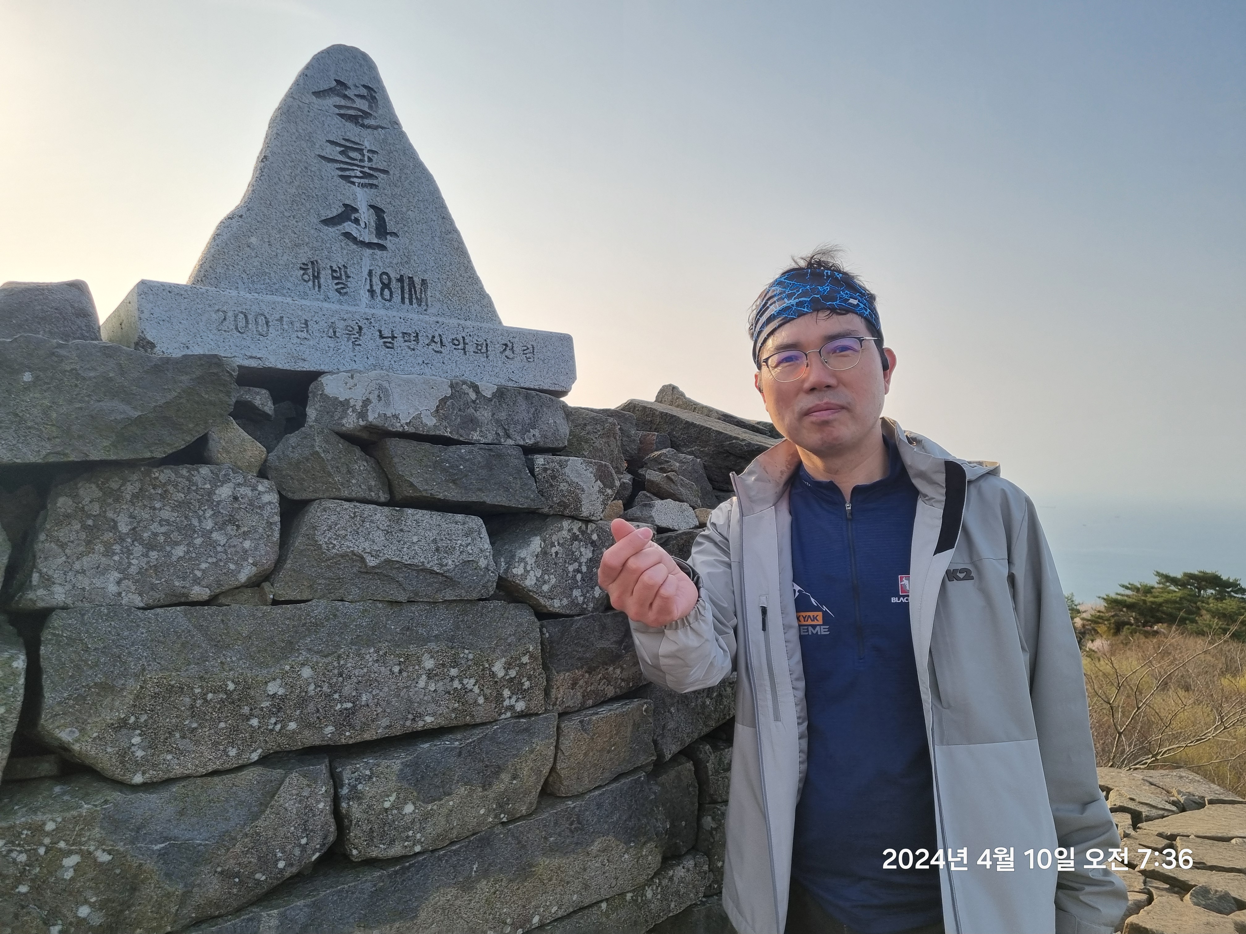 정상까지 편도 1km정도 되는 짧은 거리의 산행~~ 정상에는 이렇게 봉수대가 설치되어 있다.