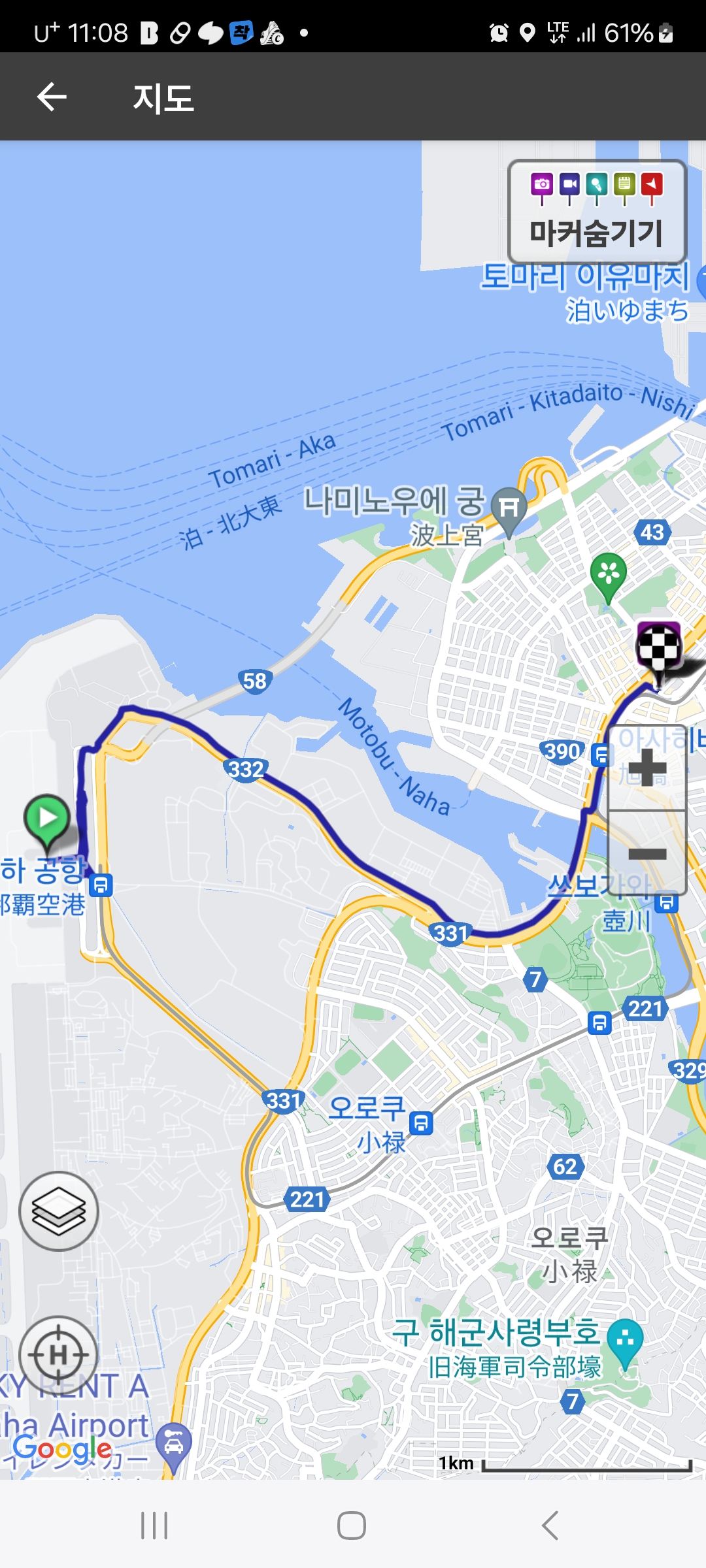 나하공항에서 숙소까지 라이딩 코스 및 거리~~