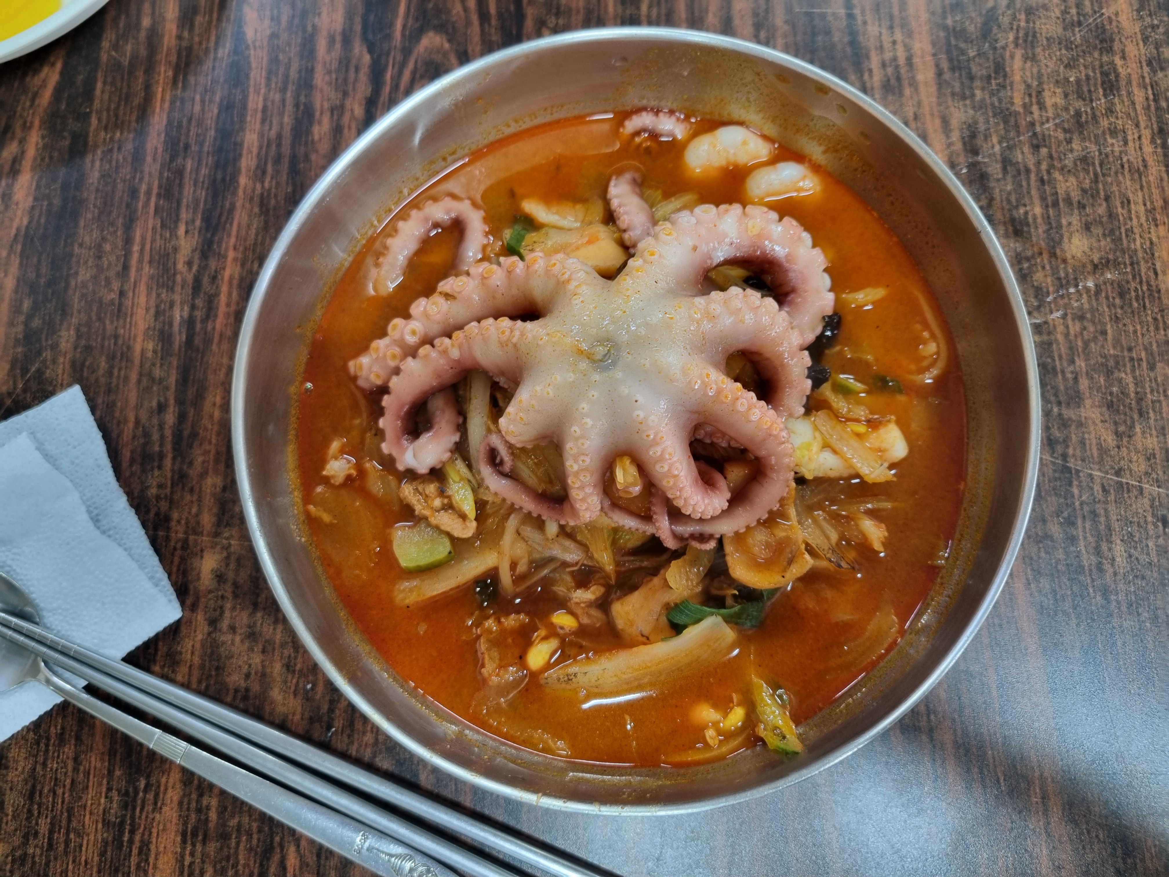 같은 영남권이지만 포항이 동쪽 끝이다보니 합천까지 2시간이 넘게 이동해야한다. 그래서 해인사IC 근처에 있는 중국집에서 짬뽕으로 점심을 먹기로 했는데 예전에 남산제일봉 오를 때 왔던 곳이다. 고기가 안들어간 스님짜장으로 유명한 곳인데 이번에도 고른 메뉴는 해물짬뽕~~ 명산탐방 다니면서 같은 식당을 두번 온 경우는 처음이다. 저렇게 낙지 한마리가 통째로 들어간 짬뽕을 보니 예전에도 먹었던 기억이 나는데 이번엔 그냥 짜장면이나 먹어볼껄 하는 생각이~~