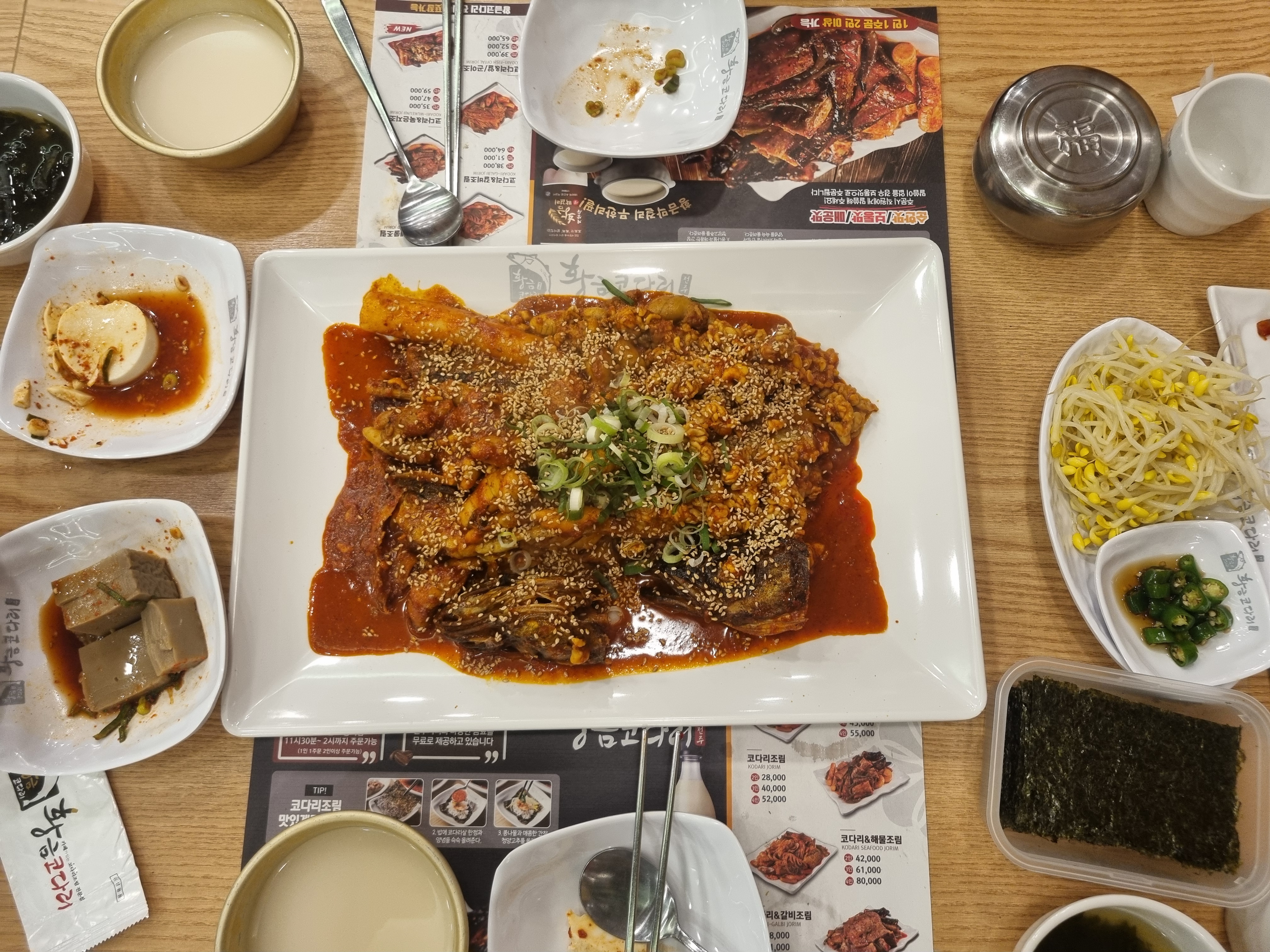 하동군청 근처로 이동하여 숙소를 잡고 저녁으로 먹은 코다리 조림~~ 본메뉴인 코다리 외에도 연두부랑 도토리묵등을 셀프로 가져와 먹을 수 있는데다 막걸리까지 무료로 주는 정말 훌륭한 식당이었다. 게다가 남은 음식은 포장까지 가능해서 숙소에서의 2차 안주까지 해결할 수 있었다. 하동에 또 갈 일이 있을까 싶지만 만약 가게되면 꼭 다시 들르고 싶은 곳이다.