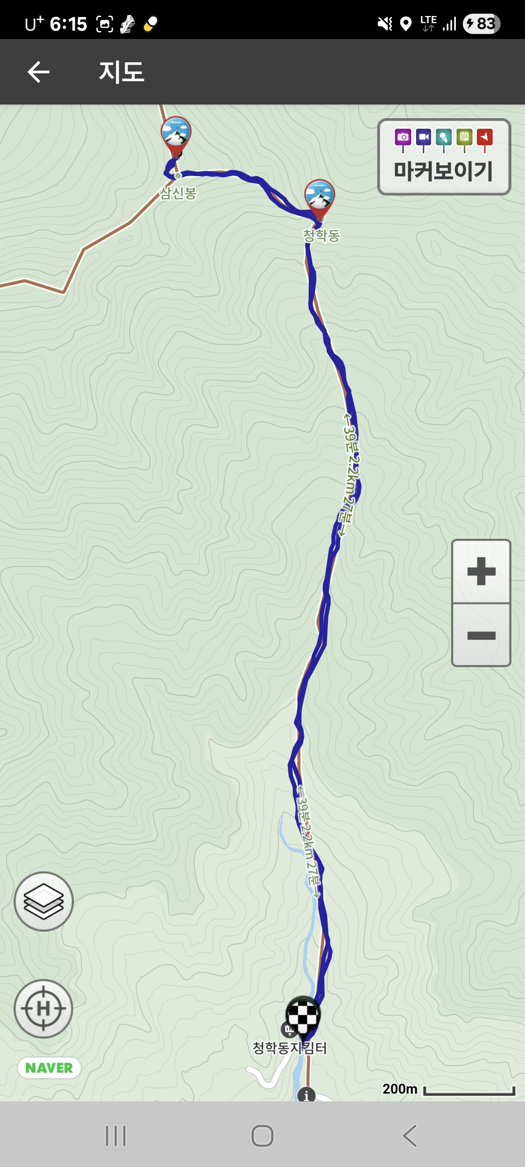 들머리에 도착한 시간이 오후 3시쯤이었는데 삼신봉이 보다시피 정상의 높이가 거의 1,300m이고 산행 거리도 왕복 5km 정도로 짧은 거리는 아닌데 나는 헤드랜턴도 안챙긴 상황에서 해가 떨어져서 어두울 때 하산을 하게될까봐 걱정이 되었지만 다행히 산행 들머리인 청학동 탐방지원센터가 700m가 넘는 곳이고 등산로가 워낙 정비가 잘 되어있어서 높이에 비해서는 그리 어렵지 않게 오를 수 있었고 왕복 2시간도 채 걸리지 않아서 산행을 마칠 수 있었다. 하여간 이날은 천왕봉을 중심으로 지리산 주능선을 조망할 수 있는 지리산의 봉우리 3곳을 오른 날이었다.