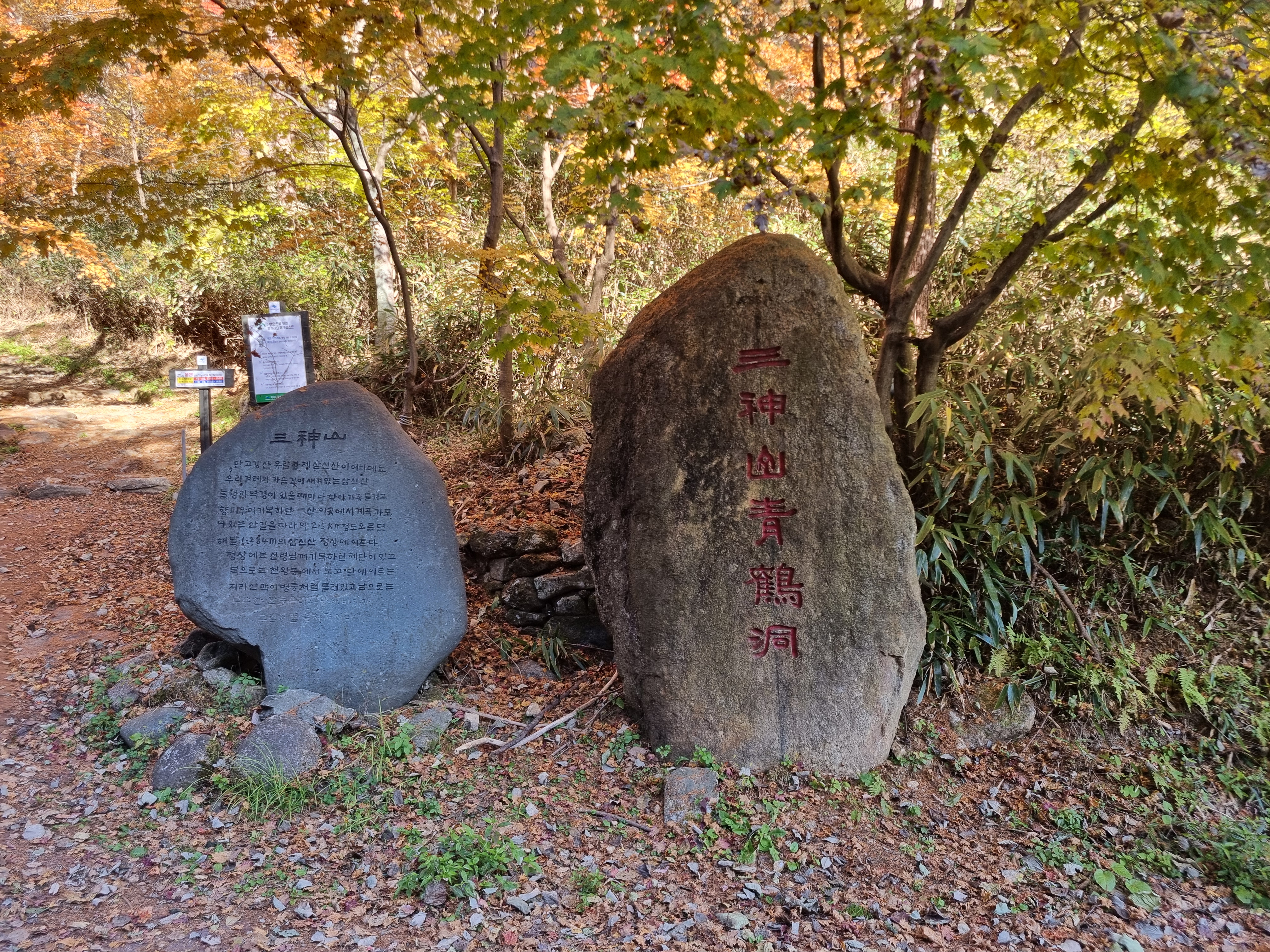 산행 입구에 삼신산 청학동이라고 적혀있는 표지석~~ 산행 시작~~